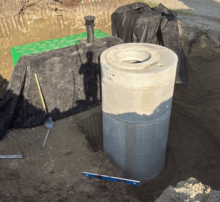 A Residential DSSP (Development Site Servicing Plan) is a detailed engineered plan that shows how a new home connects to City water, sanitary, and storm systems, and how the property manages drainage. This can include on-site storm tanks and manholes that collect and slowly release stormwater into the City’s system at a rate it can safely handle, helping prevent flooding during heavy storms.